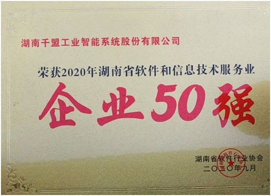 湖南千盟榮獲湖南省軟件和信息技術(shù)服務(wù)業(yè)企業(yè)50強(qiáng)