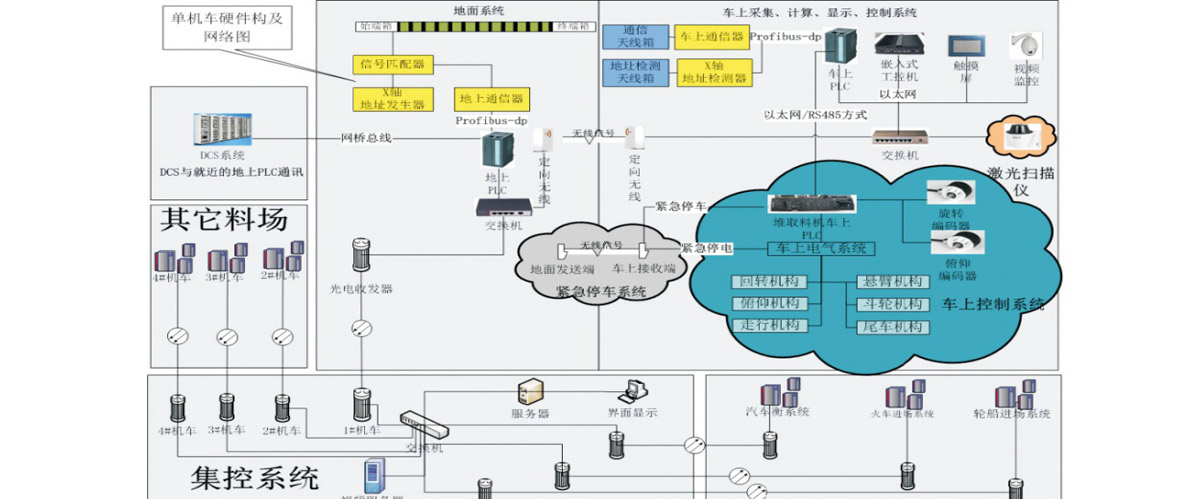 通過(guò)工業(yè)以 太網(wǎng)將各料場(chǎng)的數(shù)據(jù)傳至服務(wù)器,實(shí)現(xiàn)統(tǒng)一展示, 統(tǒng)一管理,自動(dòng)盤(pán)存