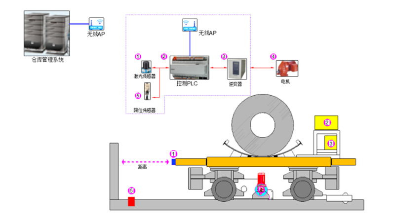 過跨車主要用于庫與庫之間、跨與跨之間轉(zhuǎn)運(yùn)物料,通過對過跨車進(jìn)行無人化改造,實(shí)現(xiàn)自動(dòng)轉(zhuǎn)運(yùn)。