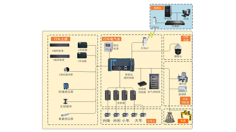 三維精準(zhǔn)定位、主動(dòng)防搖擺、主動(dòng)防碰撞、多種操作模式、四軸聯(lián)動(dòng)、無靜止通過、吊具智能控制。